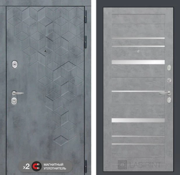 Дизайнерская входная Дверь Бетон класса Люкс с несколькими листами стали, звукоизоляцией и теплоизоляцией. Утепленный короб и полотно защитят от сквозняков и шумов. Модель не только надежная, комфортная, защищенная и высочайшего качества, но и очень красивая! Будет отлично сочетаться с интерьером дома, квартиры или офиса. Сейчас действует выгодное предложение по цене: 51 200 руб.
